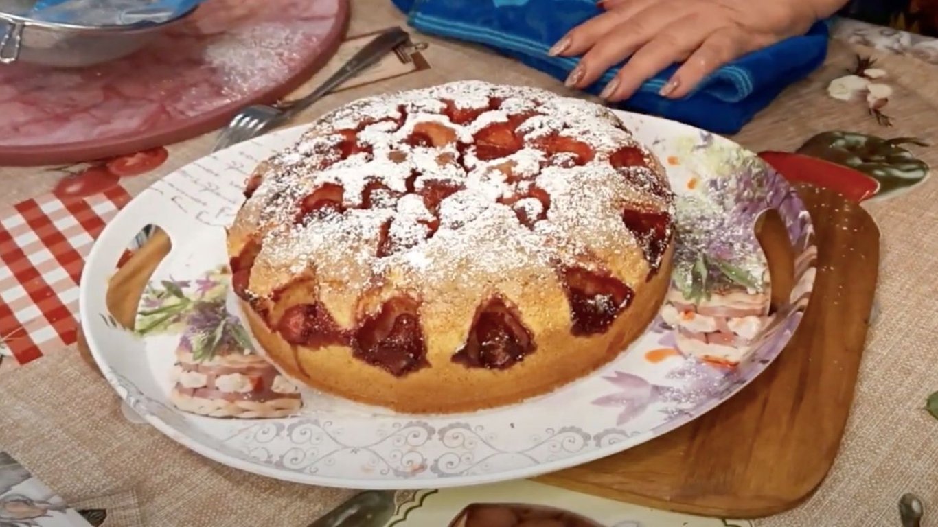Пиріг із полуницею. Фото: YouTube @na-kuhne-u-lubani