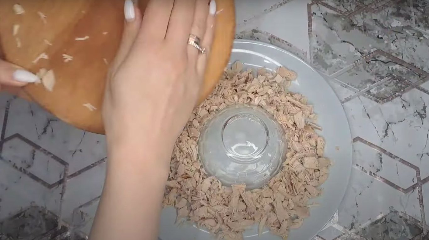 Спочатку потрібно куряче філе нарізати дрібними шматочками.