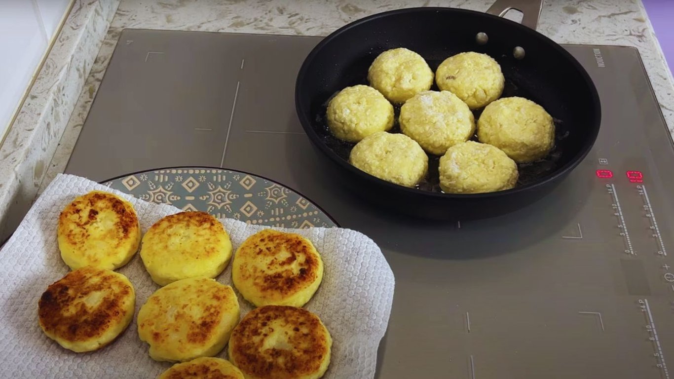 Обжариваем сырники с двух сторон до золотистой корочки, выкладываем на бумажное полотенце и даем немного остыть. Из этого количества теста получится 18 сырников.