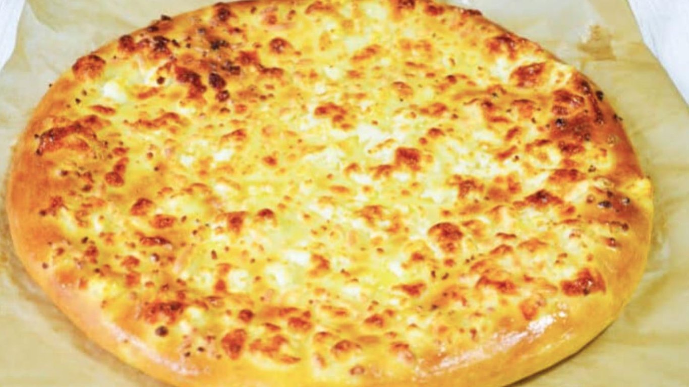 Разделить тесто на 2 части, раскатать круглые лепешки, выложить сырную начинку посередине, завернуть тесто, плотно запечатать, чтобы начинка оказалась внутри.