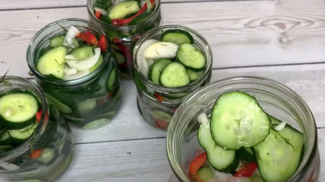 Огірки в банці. Фото: YouTube @lilija-tsvit